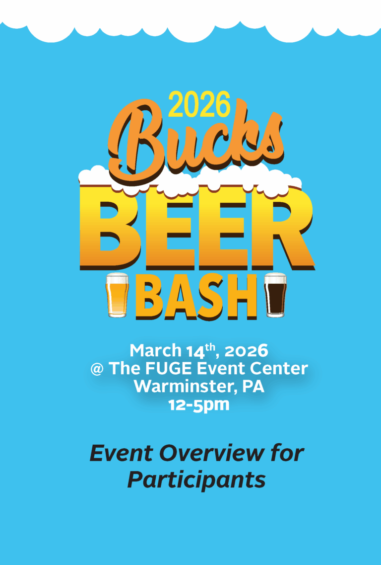 Be part of something exciting and big in the Bucks Beer scene. Join us at the 2026 Bucks Beer Bash on Saturday March 14th!